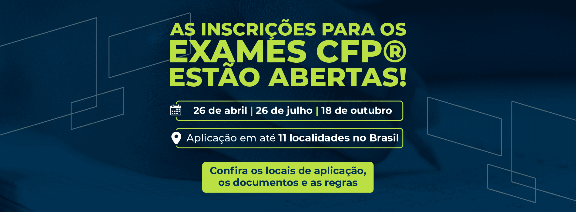 O exame CFP® irá testar seus conhecimentos e a capacidade de aplicação de planejamento financeiro em situações da vida real, garantindo que tenha qualificação para cuidar das finanças dos clientes.