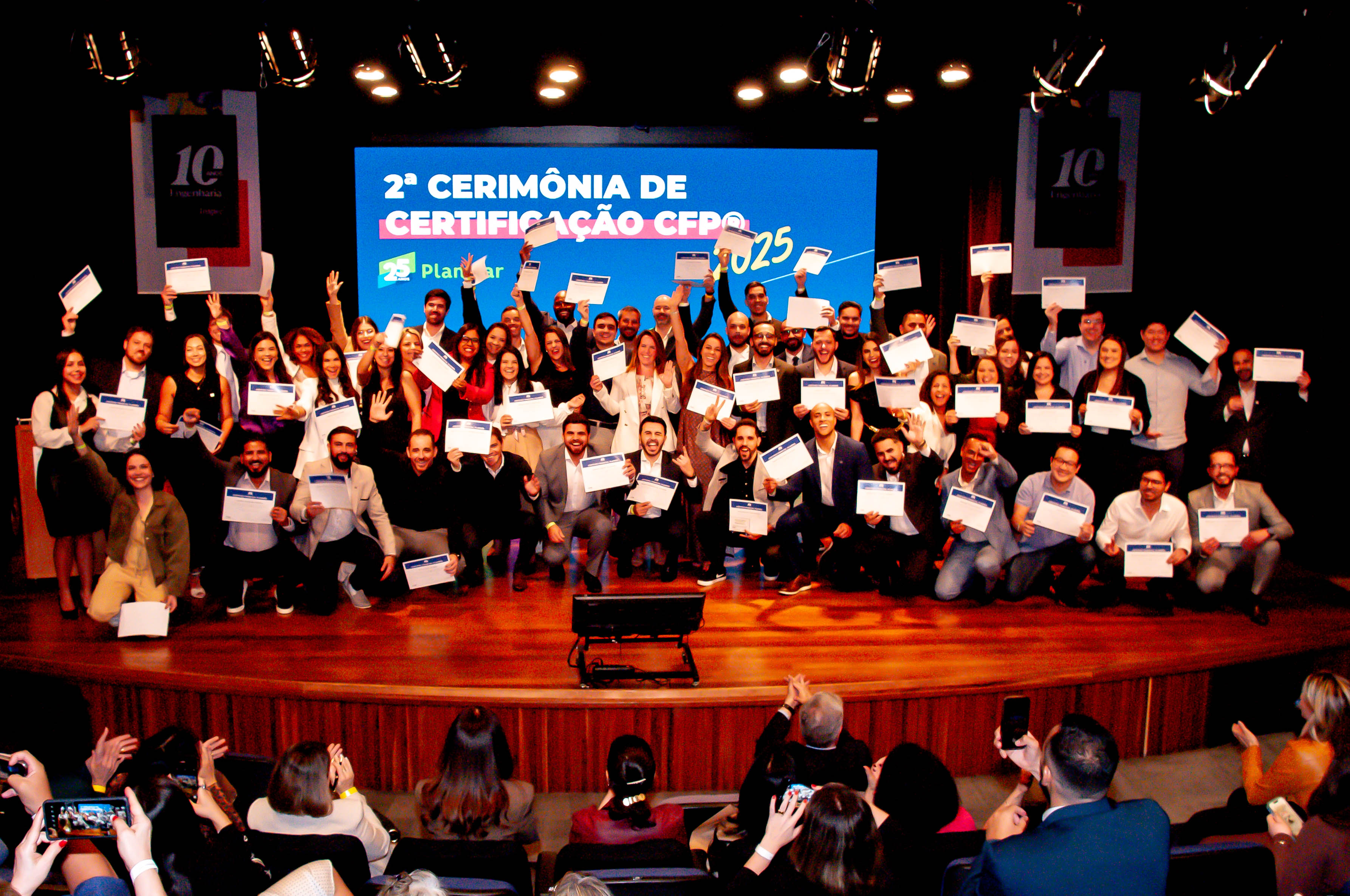 Em 2025, também foram realizadas duas cerimônias de certificação, que celebraram a conquista dos novos profissionais CFP® e marcaram o início de sua integração à comunidade global da certificação.