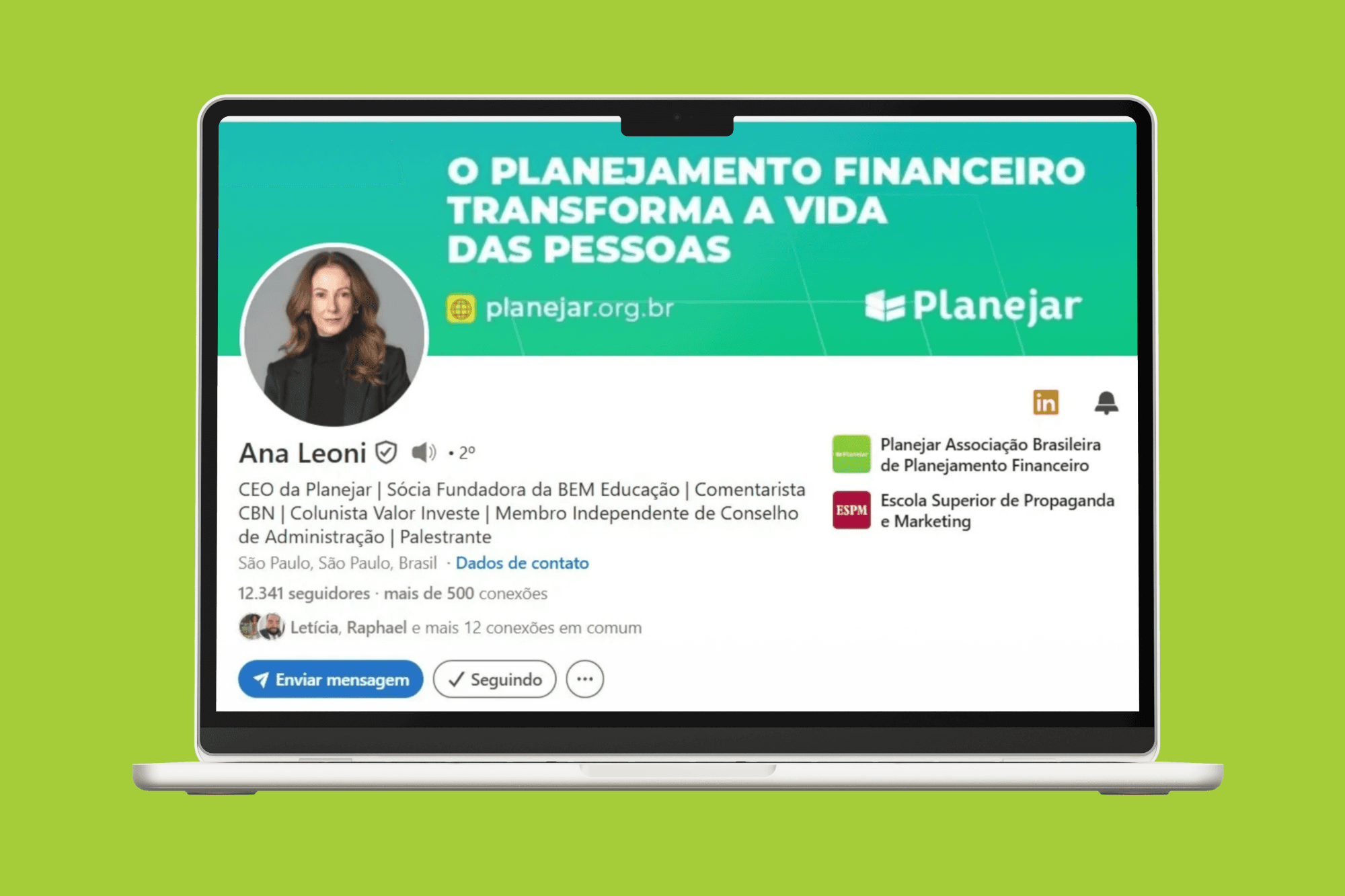 Em 2025, a Planejar deu seguimento à estratégia de posicionamento institucional na rede por meio do perfil executivo da CEO da Planejar, Ana Leoni. Desde outubro de 2024, Ana integra o programa Top Voices, grupo de especialistas reconhecidos globalmente e chancelados pela rede social.