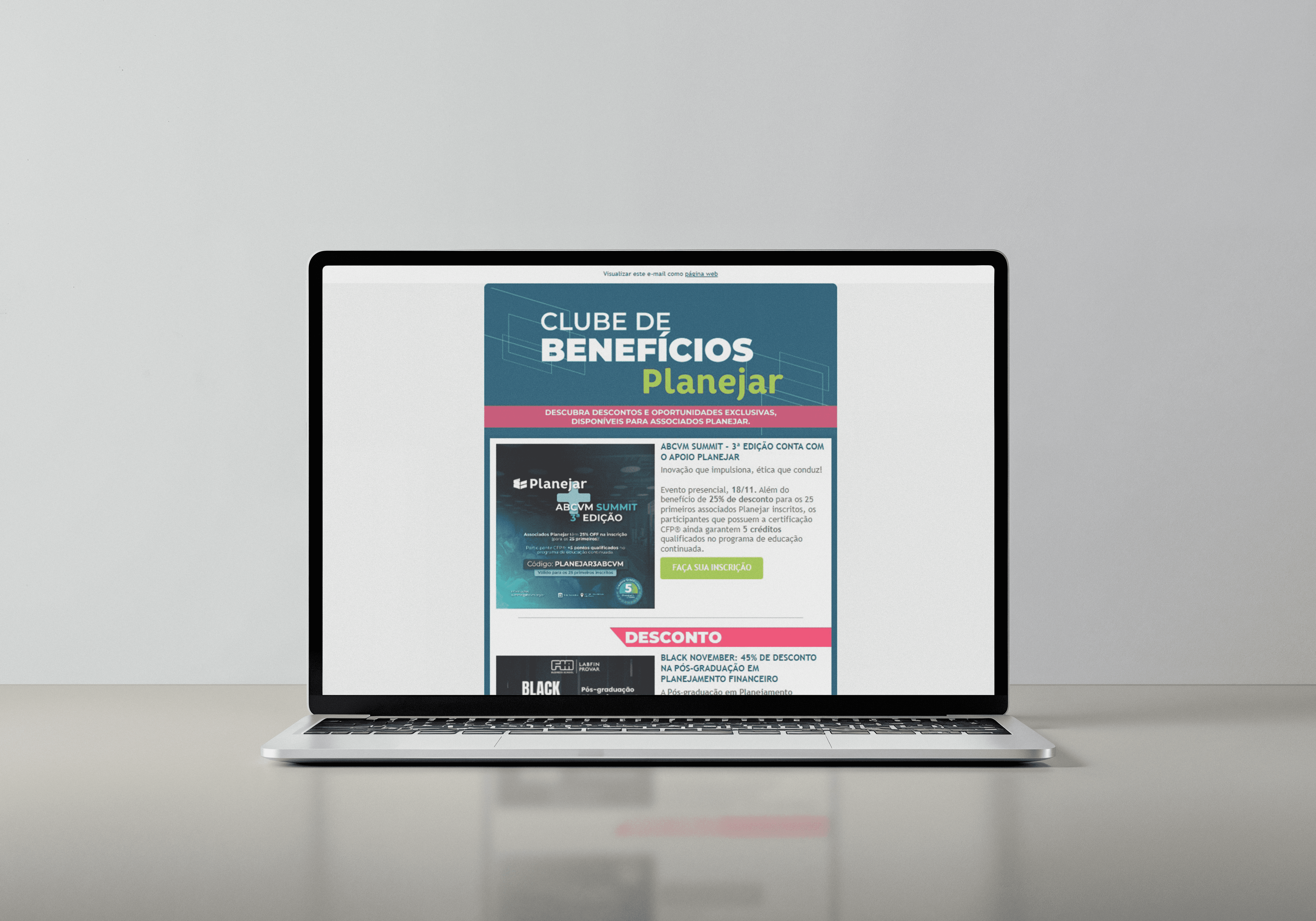 A Planejar criou o novo boletim com o objetivo de disponibilizar aos profissionais CFP® oportunidades exclusivas de atualização e descontos em cursos e atividades de parceiros institucionais. A iniciativa foi estruturada para oferecer à base certificada benefícios que agreguem valor à jornada profissional, facilitando o acesso a conteúdos voltados à educação continuada. Com uma frequência mensal, o canal realizou 18 envios ao longo do ano, registrando 40,30% de média de abertura e 3,32% de cliques.